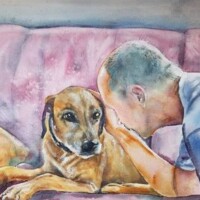 This is me with my basset hound Roxy. As a pet owner, I understand the love we have for our pets. They really are a part of our families. I’m able, with your help, to capture the personality and beauty of your beloved pet in a watercolor pet painting.