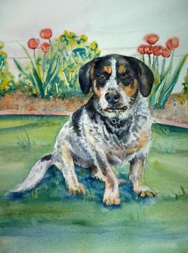 This is me with my basset hound Roxy. As a pet owner, I understand the love we have for our pets. They really are a part of our families. I’m able, with your help, to capture the personality and beauty of your beloved pet in a watercolor pet painting.