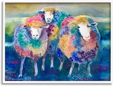 Stupell Industries Fun Cute Bold Rainbow Farm Sheep