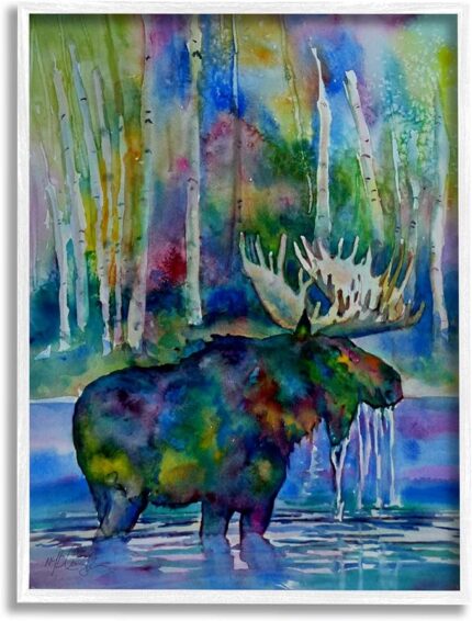 • Artwork Relates To: Painting; Wildlife; Animal; Moose; Mammal; Birch Trees , Watercolor